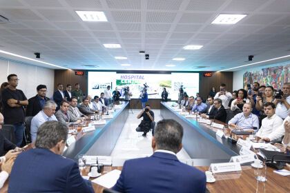 Deputados estaduais participaram, nesta quarta-feira (9), da reunião que marcou a entrega da Mensagem do governo do estado que autoriza o Executivo a firmar parceria com o Hospital Israelita Albert Einstein para a gestão do novo Hospital Central, em Cuiabá. A proposta será encaminhada à Assembleia Legislativa de Mato Grosso (ALMT) para análise e votação dos parlamentares. A Mensagem que tramita como Projeto de Lei Completar nº 10/25 já foi lida na sessão matutina desta quarta-feira (9).