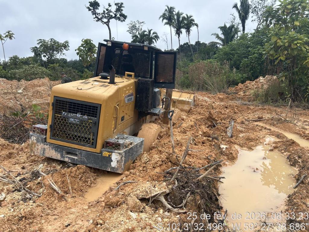 Ao chegar nas coordenadas indicadas, constatou-se a degradação ambiental mediante a abertura de cavas e movimentação de terra para extração de minério. Durante buscas no local, os policiais encontraram uma pá carregadeira (carregador frontal) atolada. O maquinário foi retirado e encaminhado à Secretaria Municipal de Infraestrutura de Colniza.