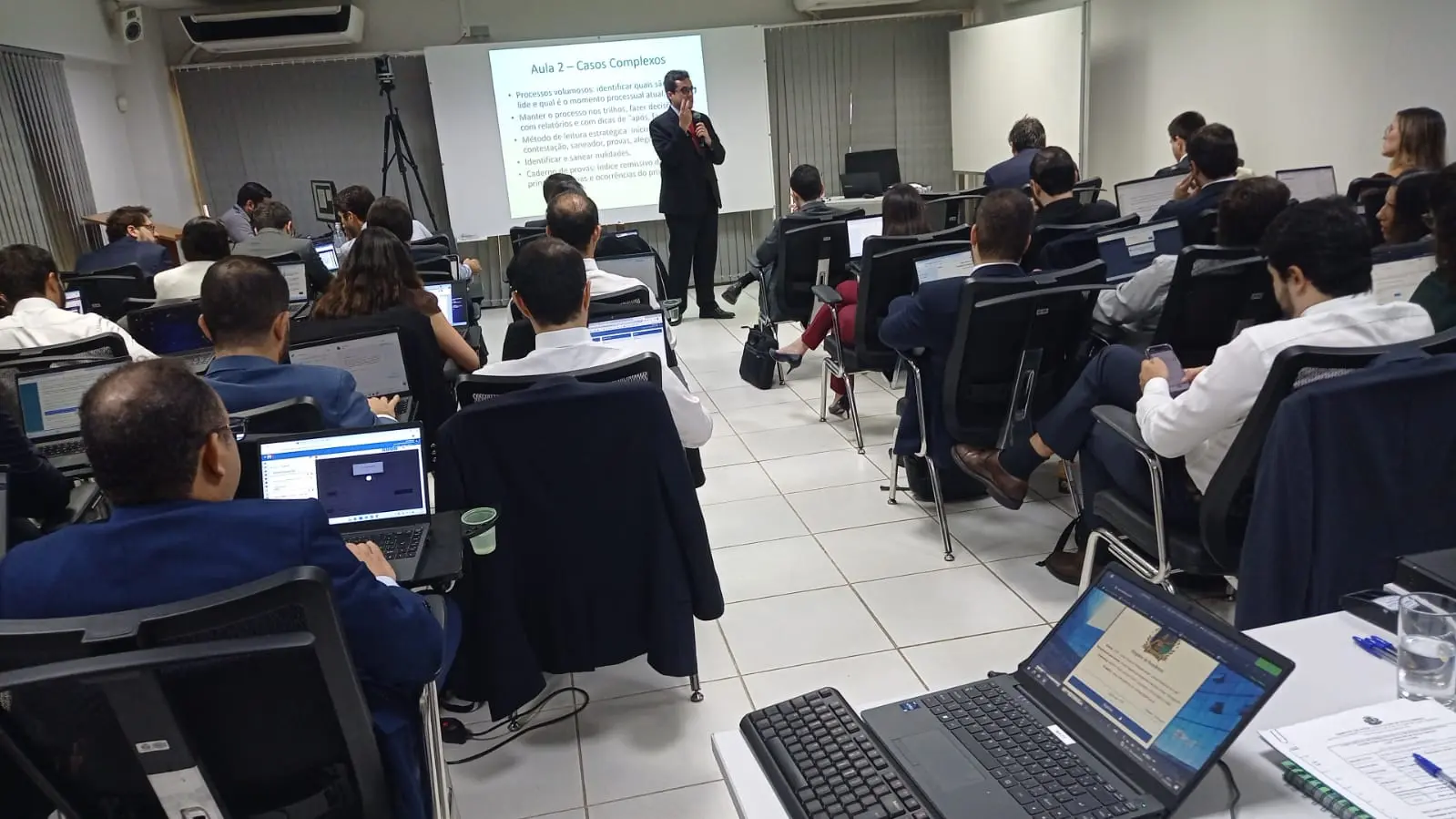 O segundo dia foi dedicado à condução de processos complexos e volumosos, com orientações sobre desmembramento, organização e elaboração de decisões nesses casos. O juiz também abordou decisões urgentes, especialmente as proferidas em audiência, além de medidas que envolvem uso da força, como reintegrações de posse e buscas e apreensões. A programação incluiu ainda temas como coisa julgada, elaboração de ementas, julgamento colegiado previsto na Lei 12.614 e técnicas para garantir maior efetividade das decisões.