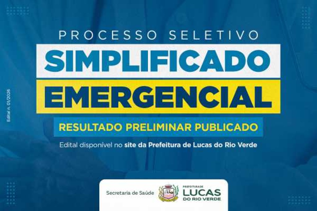 Já está disponível no site da Prefeitura de Lucas do Rio Verde, o resultado preliminar do Processo Seletivo Simplificado Emergencial (Edital n. 001/2026).