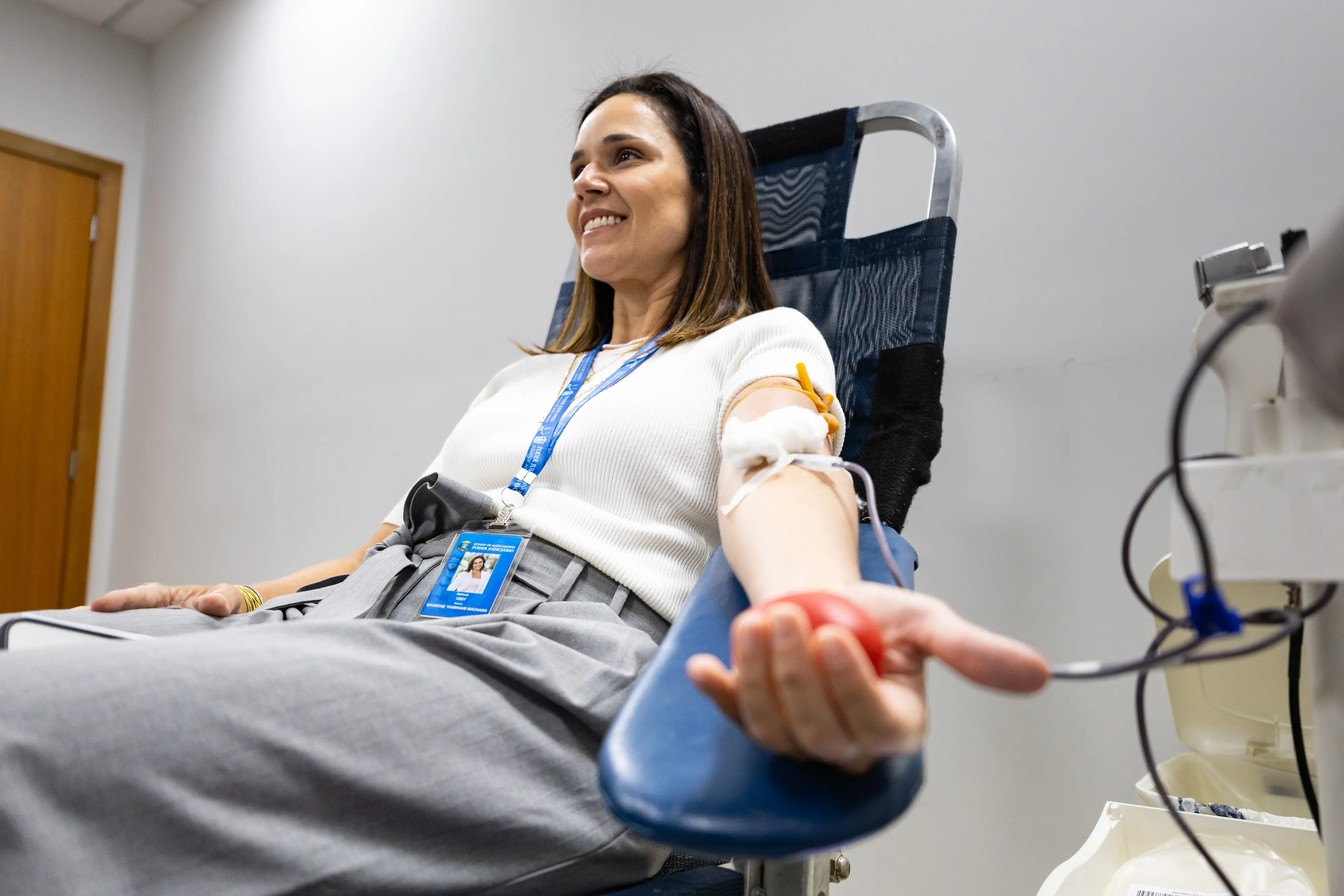 A estagiária da Primeira Câmara de Direito Privado do TJMT, Mariana Eduarda Barbosa, doou sangue pela primeira vez e avaliou a experiência como positiva. “Achei super tranquila. As profissionais foram muito atenciosas, tanto na triagem quanto na coleta. Em cerca de 15 minutos já havia finalizado todo o procedimento, sem dor ou desconforto. Além disso, foi muito prático realizar a doação no próprio ambiente de trabalho.”