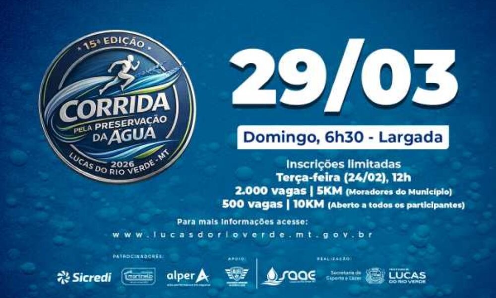 A Corrida Pela Preservação da Água 2026 estará com inscrições abertas a partir desta terça-feira (24), às 12h, em Lucas do Rio Verde. A tradicional corrida...
