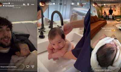 O cantor Nattan, de 27 anos, derreteu os seguidores ao compartilhar um vídeo da filha Zuza, fruto do relacionamento com Rafa Kalimann, de 32, tomando banho...